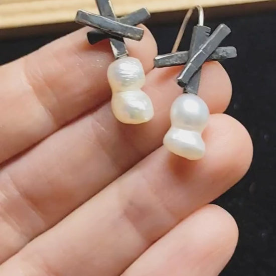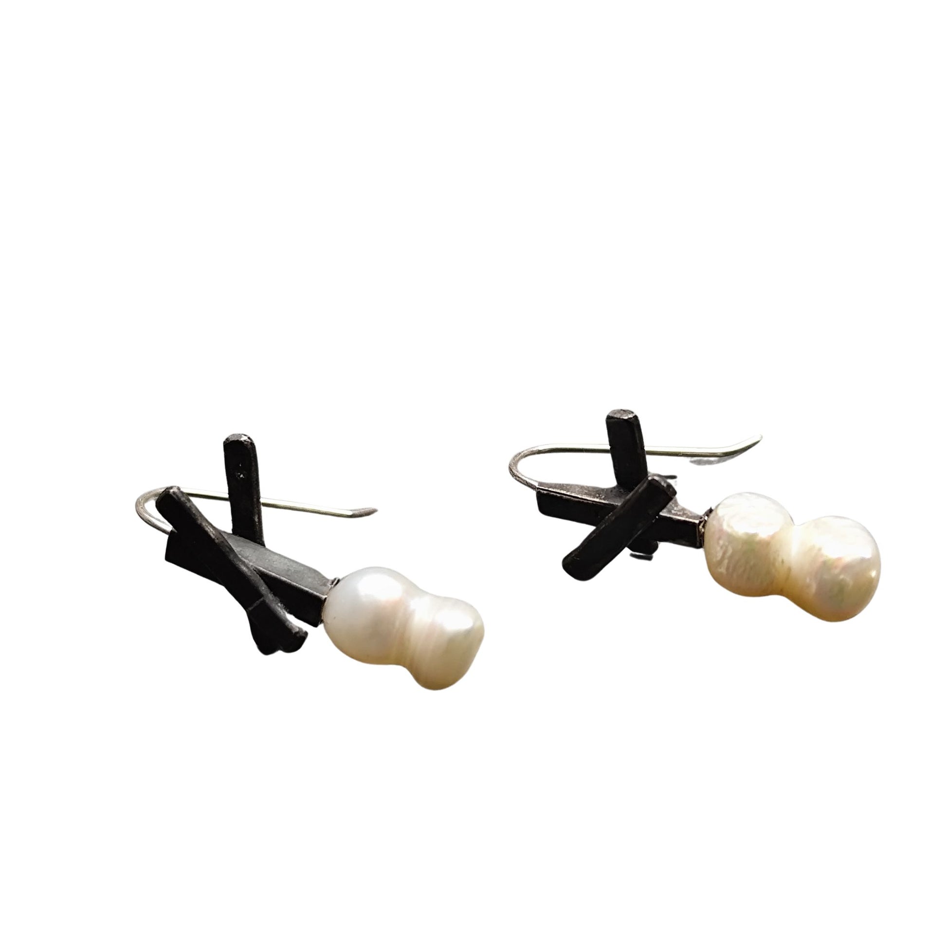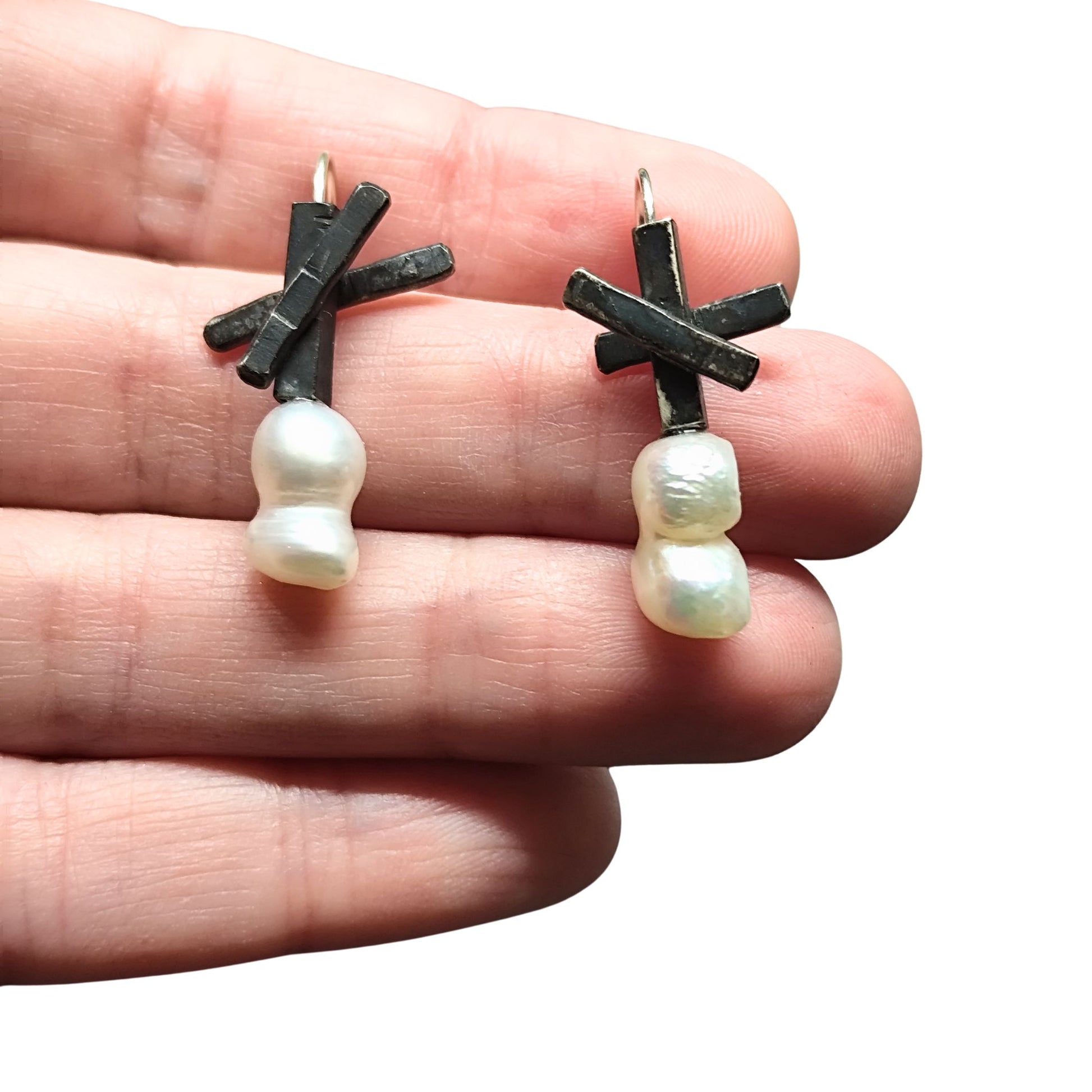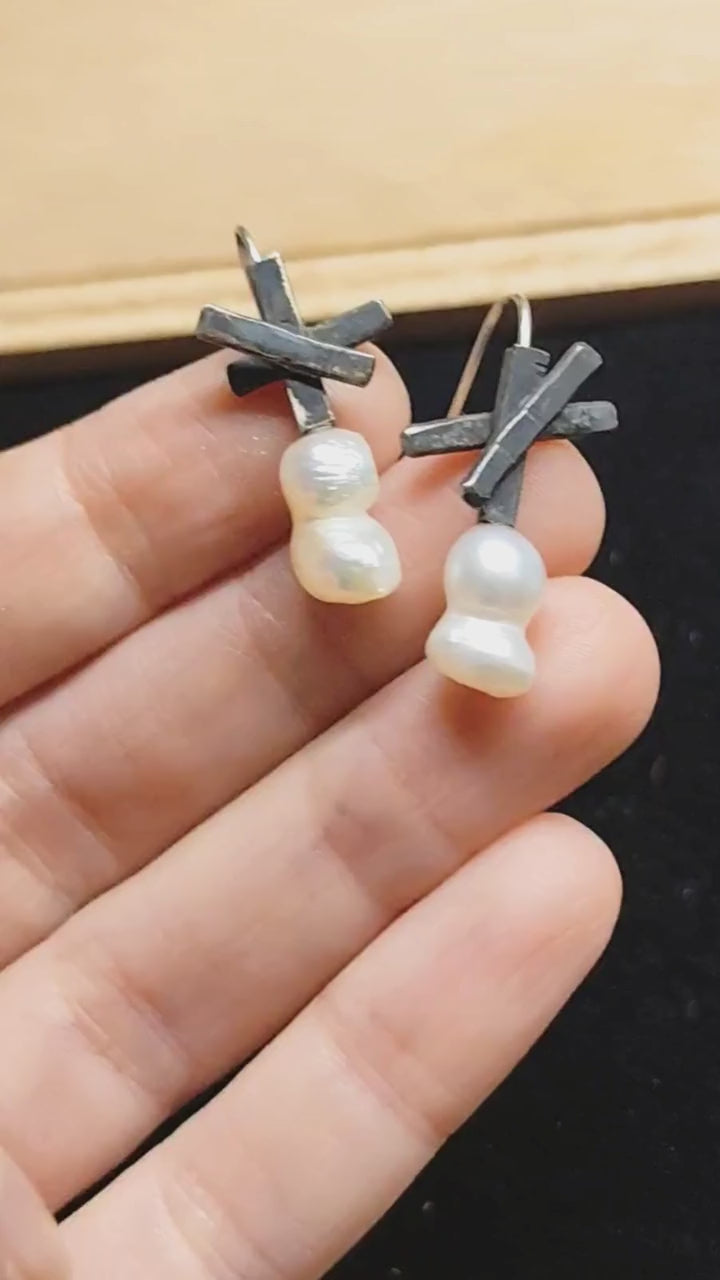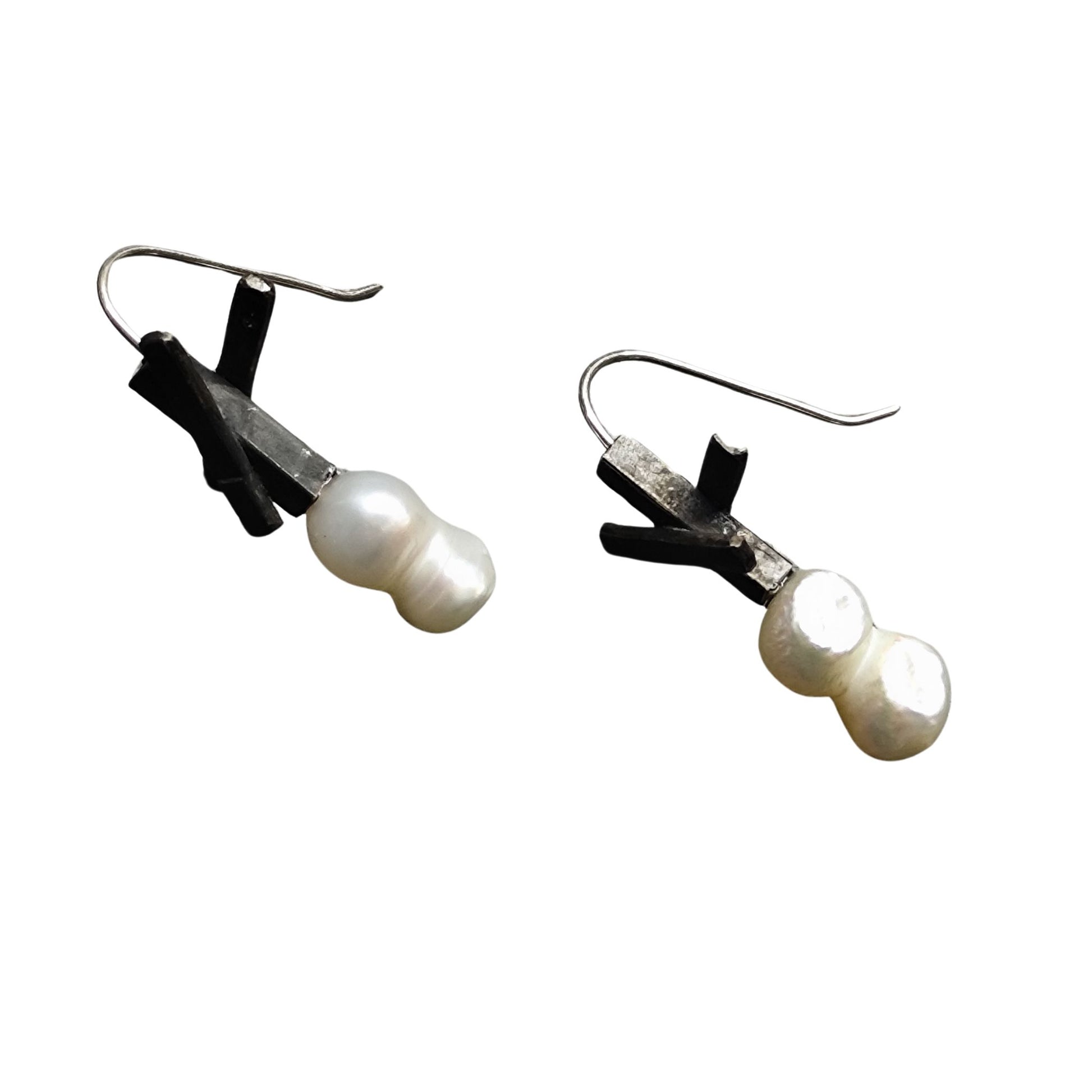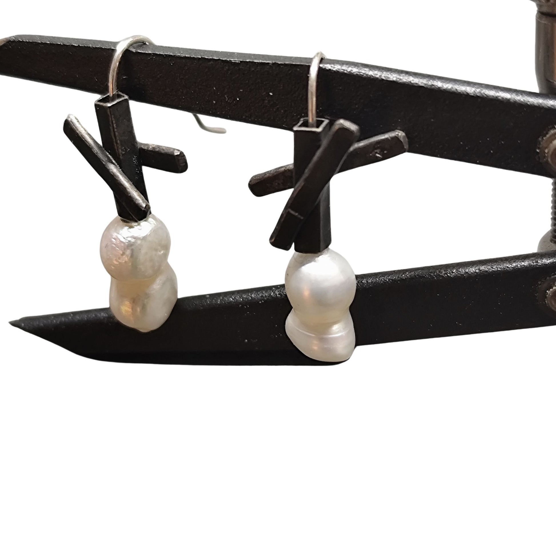 Χειροποίητα σκουλαρίκια με μαργαριτάρια και μικρά ασημένια στοιχεία που θυμίζουν αστέρια ή κλαδιά — ιδανικά για να συμπληρώσουν το "Άστρα" κολιέ ή να φορεθούν μόνα τους με κομψότητα.