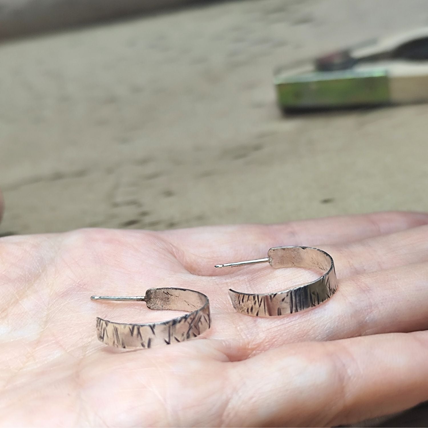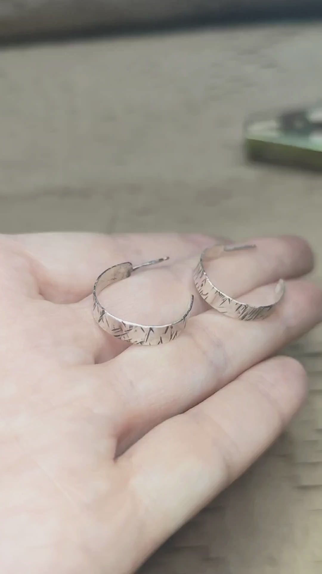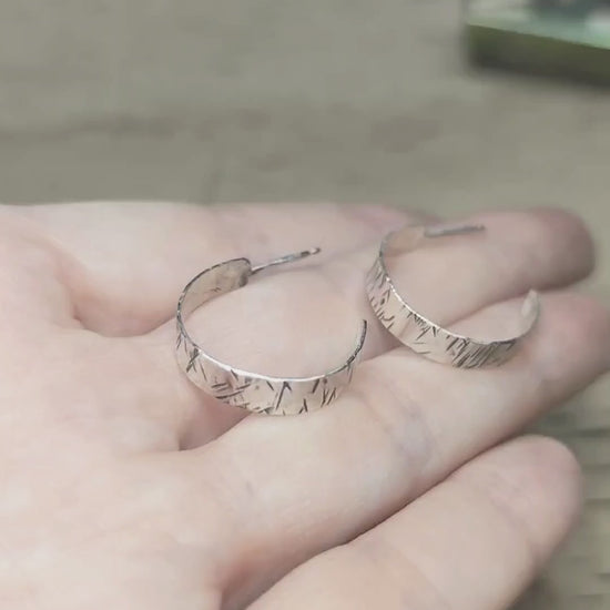 Ασημένιοι κρίκοι με σφυρήλατη υφή και μαύρη οξείδωση. Η χειροποίητη αίσθηση και η διακριτική τους λάμψη τους κάνουν ιδανικούς για boho layering ή ως διακριτικό statement κομμάτι. Διαχρονική και ιδανική επιλογή για κάθε μέρα.