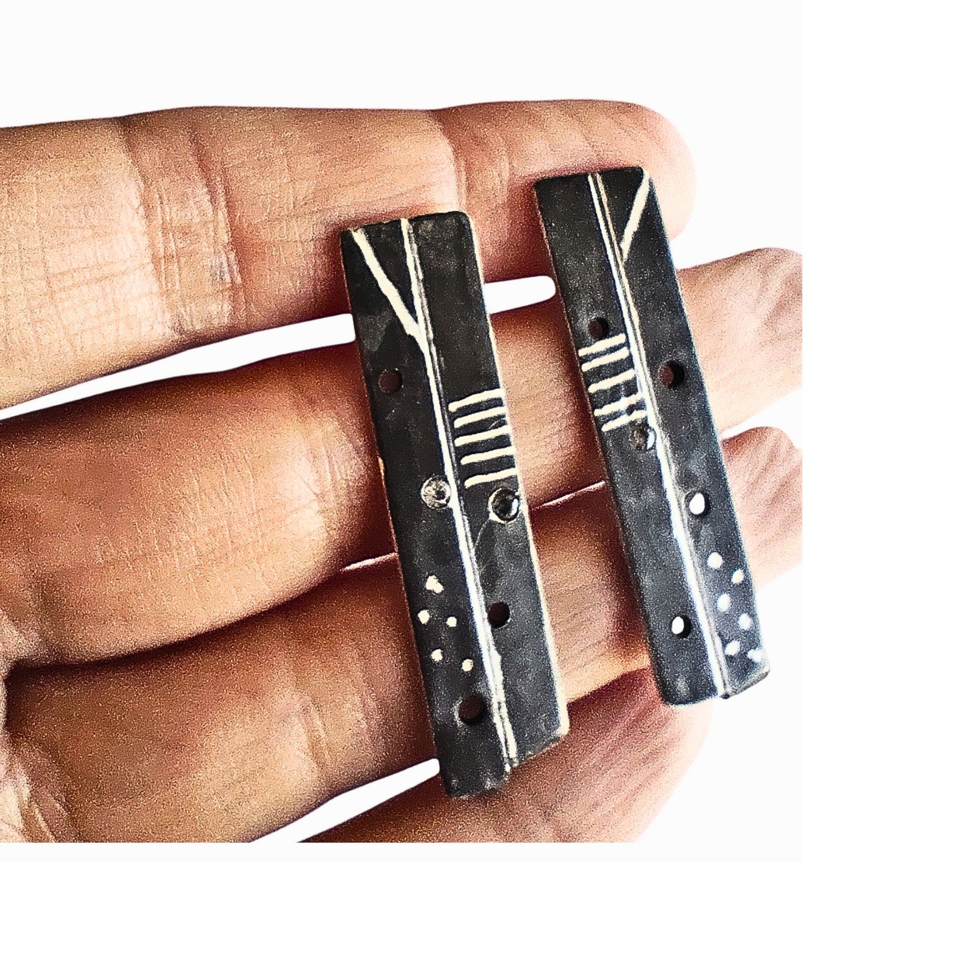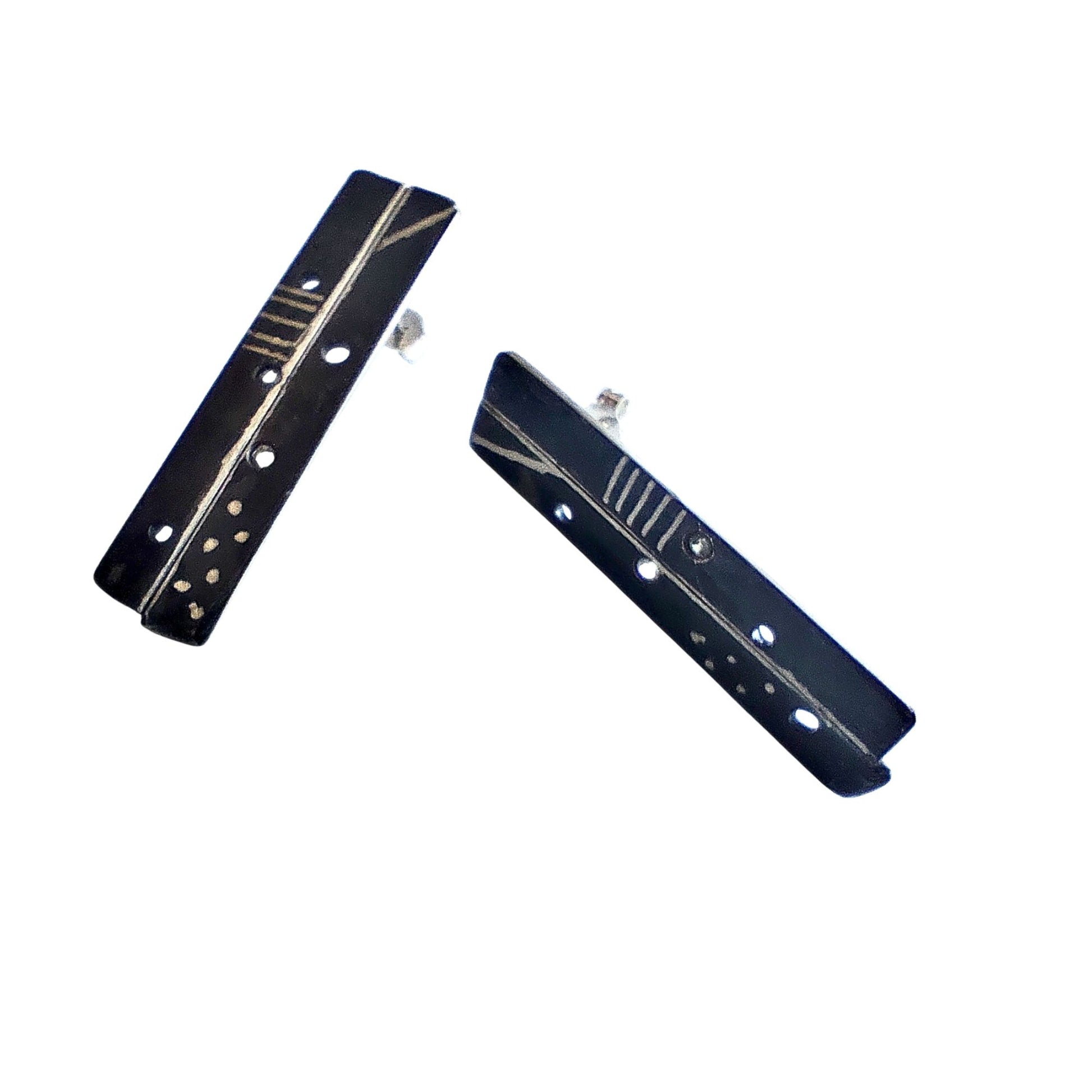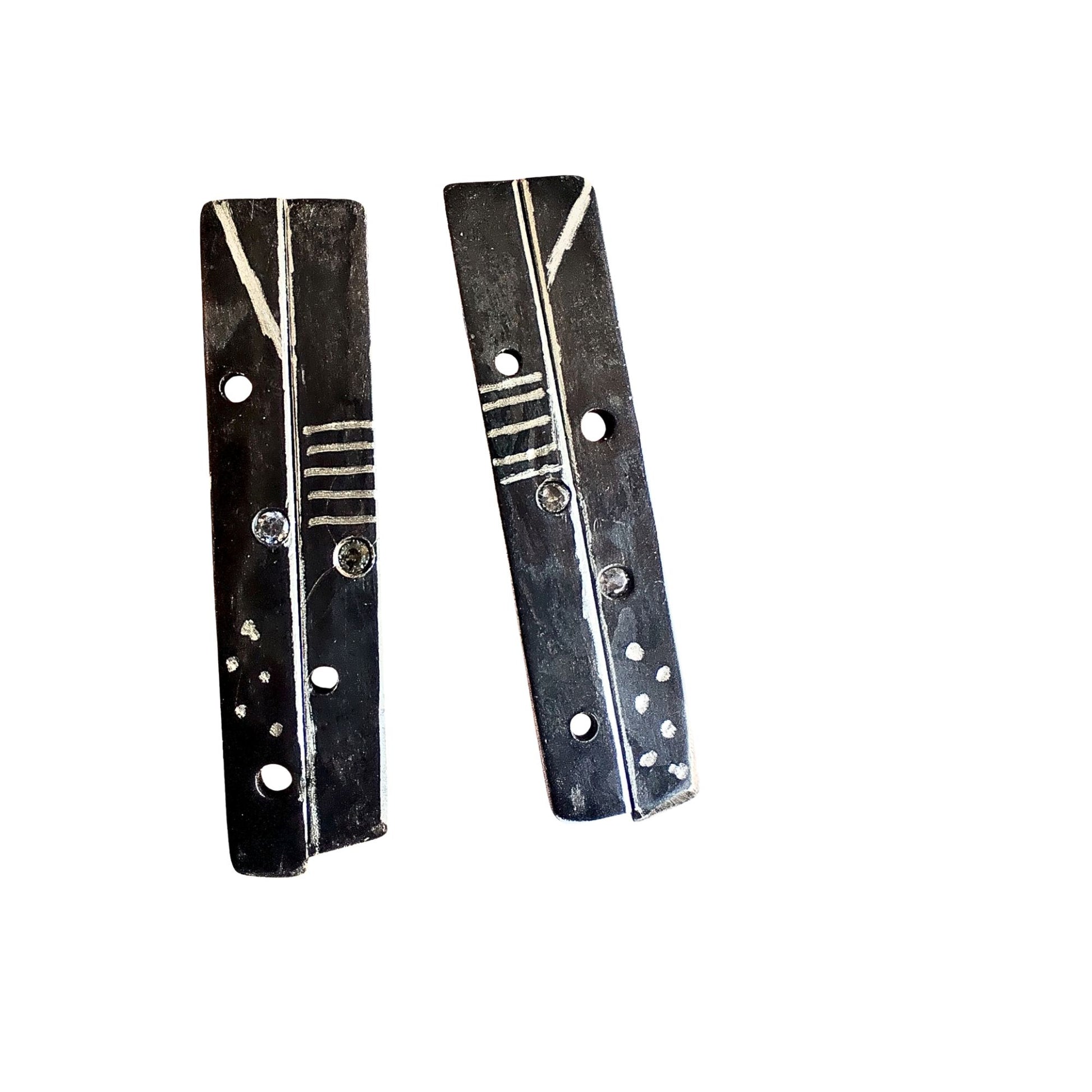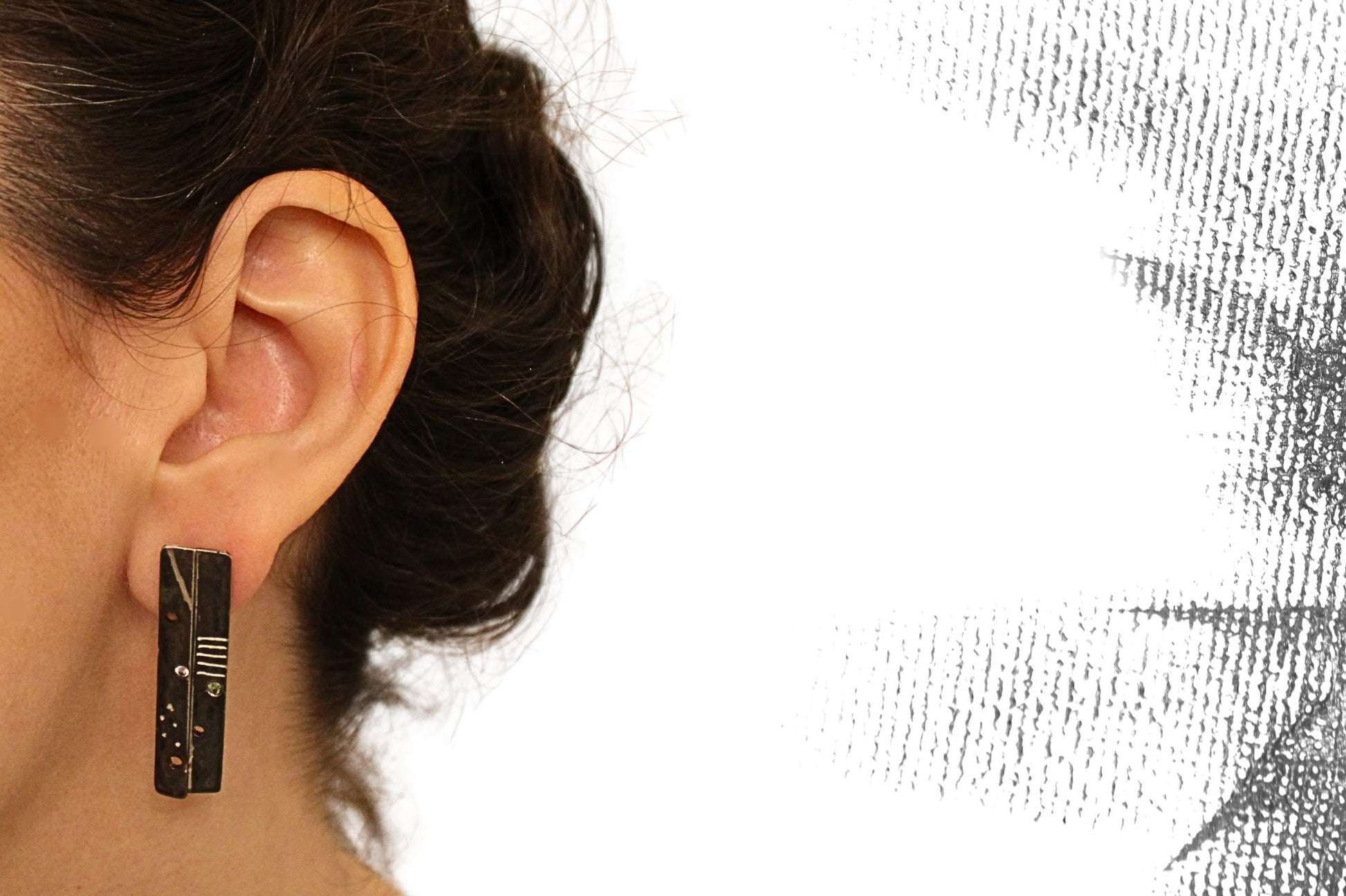 Σκοτεινή κομψότητα με λεπτομέρειες που μαγνητίζουν. Αυτά τα μοναδικά ασύμμετρα σκουλαρίκια είναι χειροποίητα από οξειδωμένο ασήμι 925, με χαράξεις που προσθέτουν βάθος και υφή. Λαμπερά ζιρκόν ενσωματώνονται διακριτικά στο σχέδιο, δημιουργώντας έναν δυναμικό συνδυασμό φωτός και σκιάς.