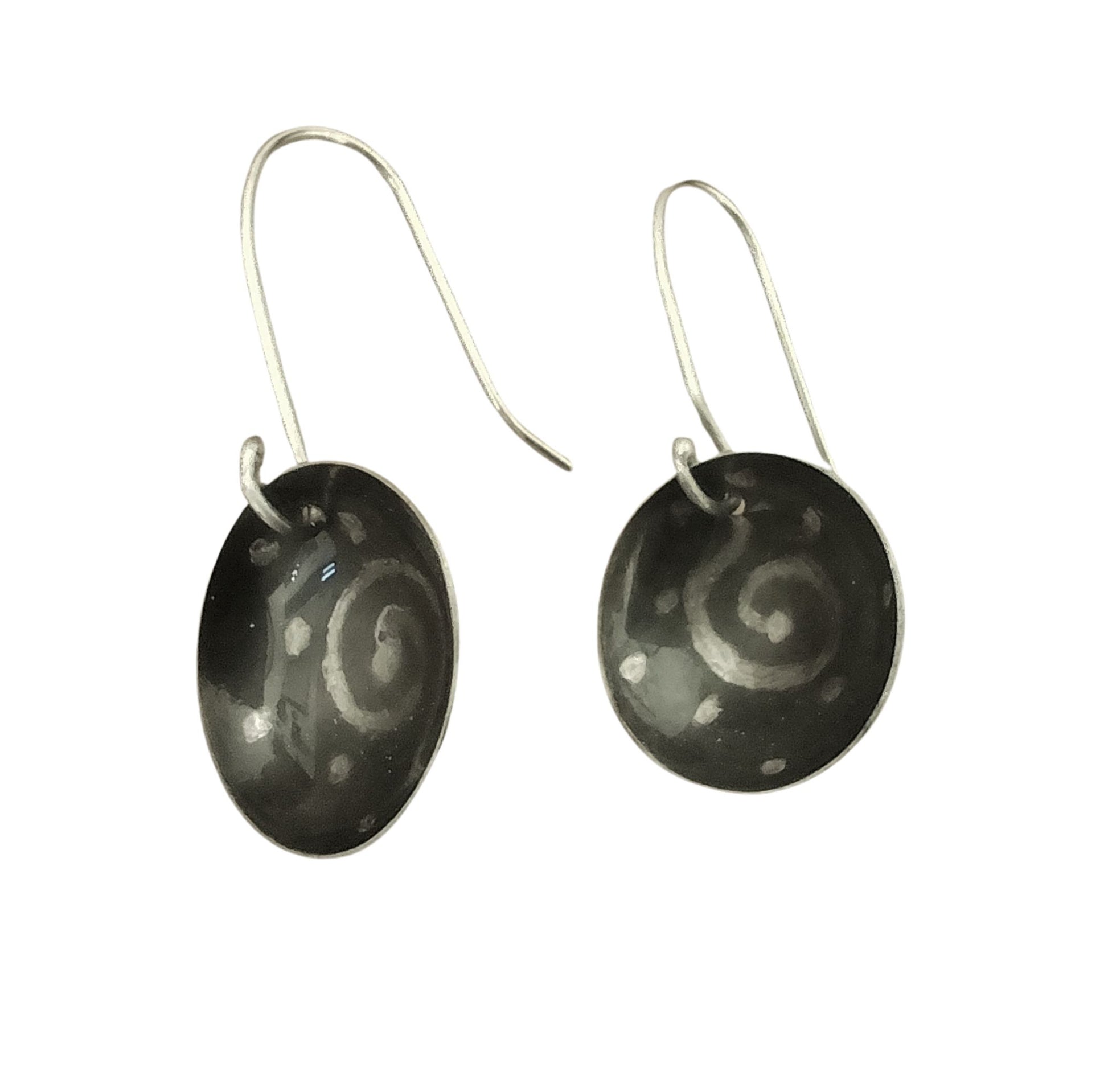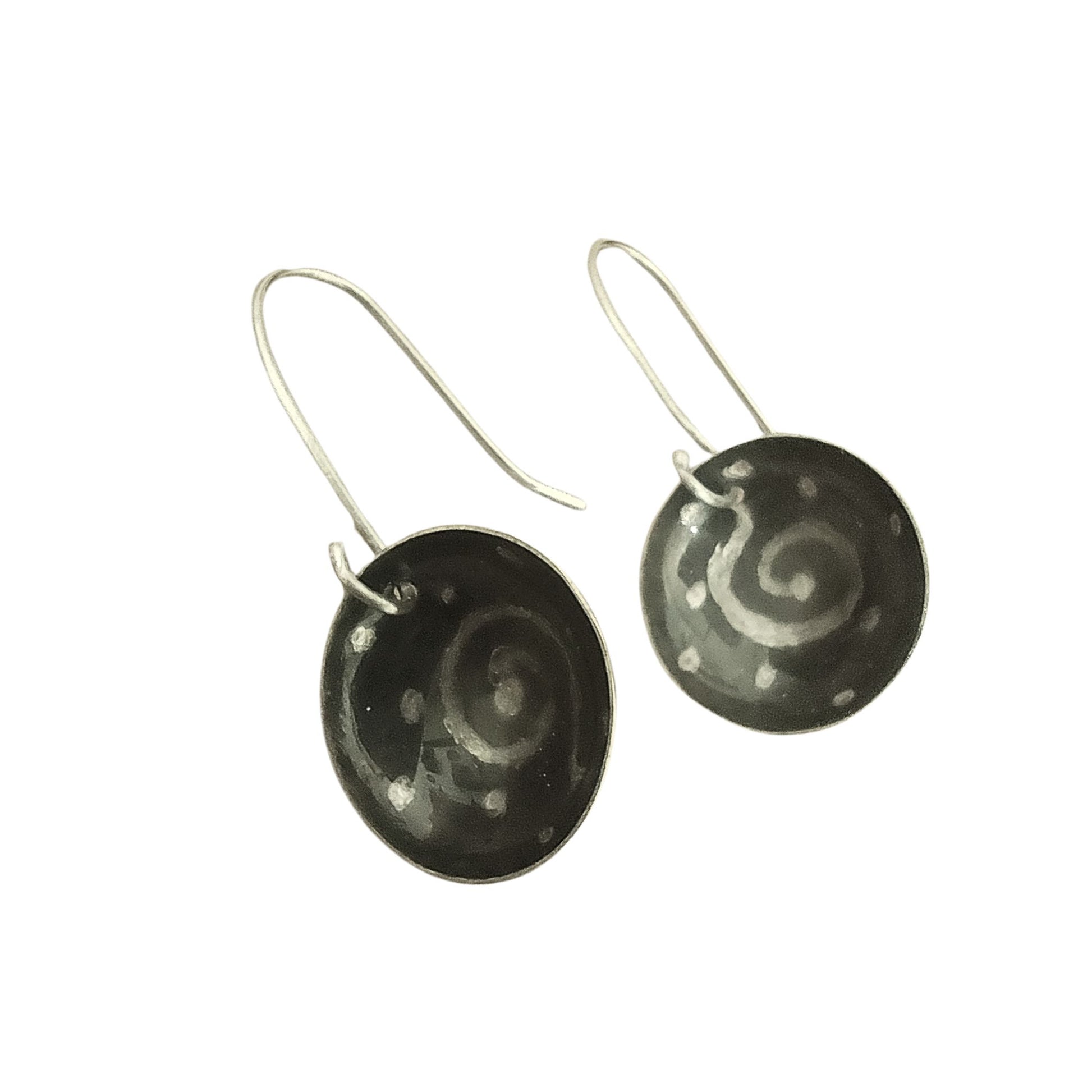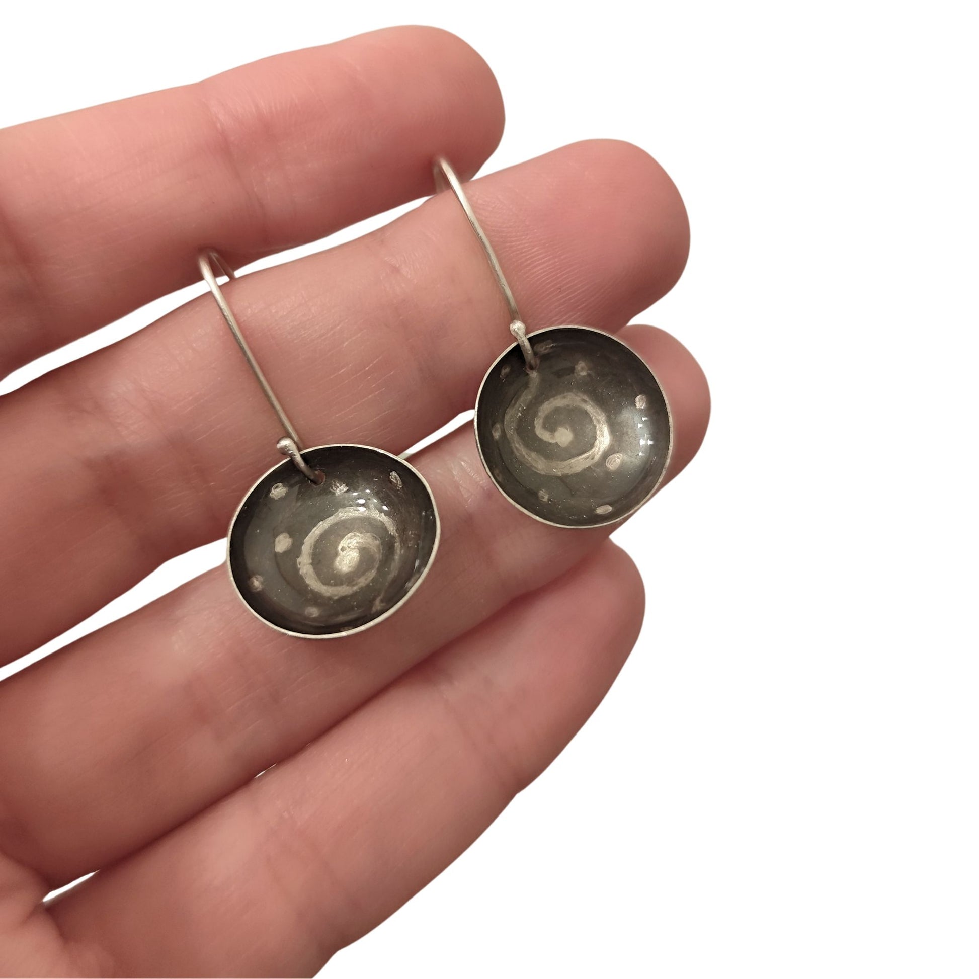 Πρόσθεσε μια κοσμική πινελιά στο καθημερινό σου στυλ. Φτιαγμένα στο χέρι από οξειδωμένο ασήμι και χαραγμένες σπείρες εμπνευσμένες από το διάστημα, είναι ελαφριά και εντυπωσιακά. Ιδανικά για όσους αγαπούν τον μινιμαλισμό.