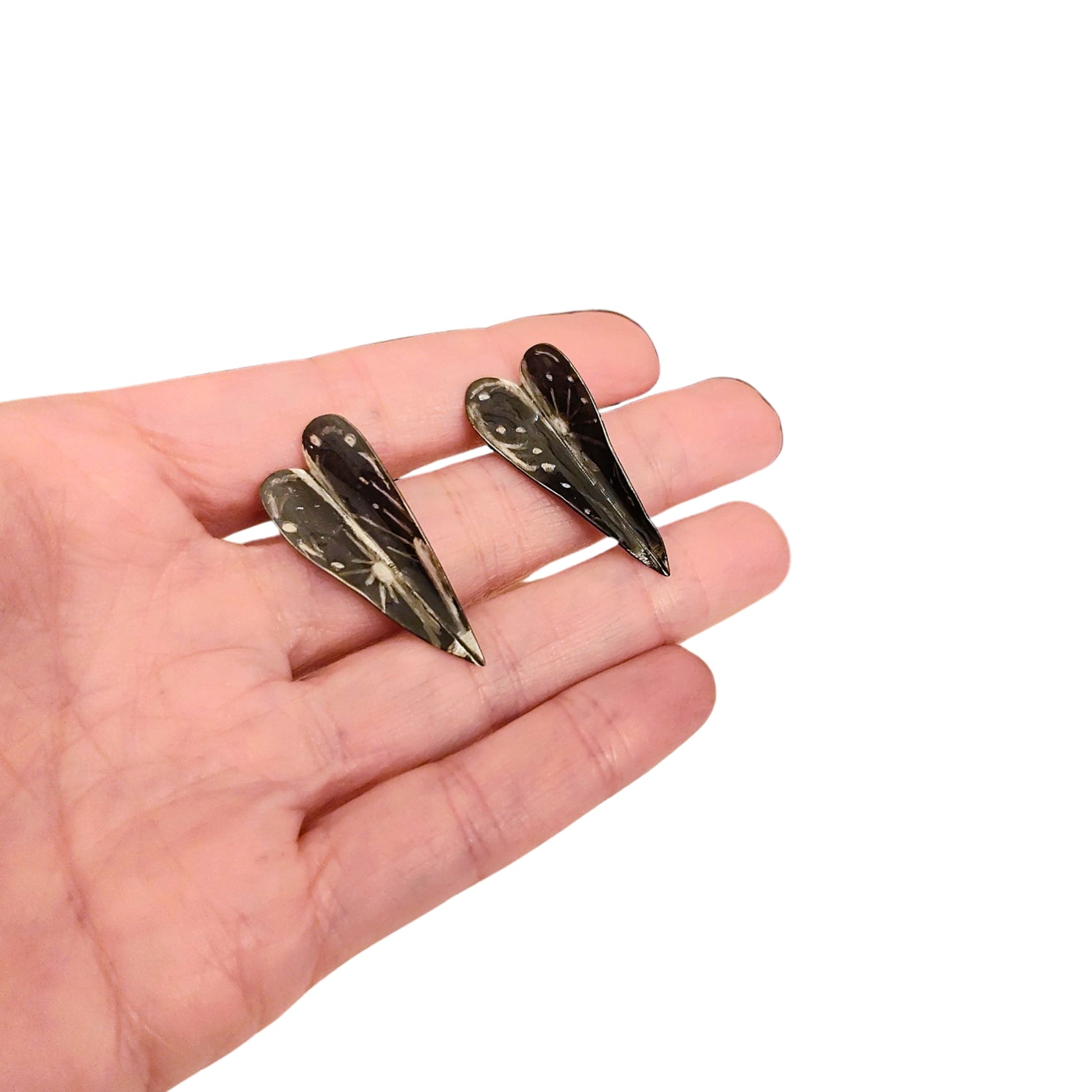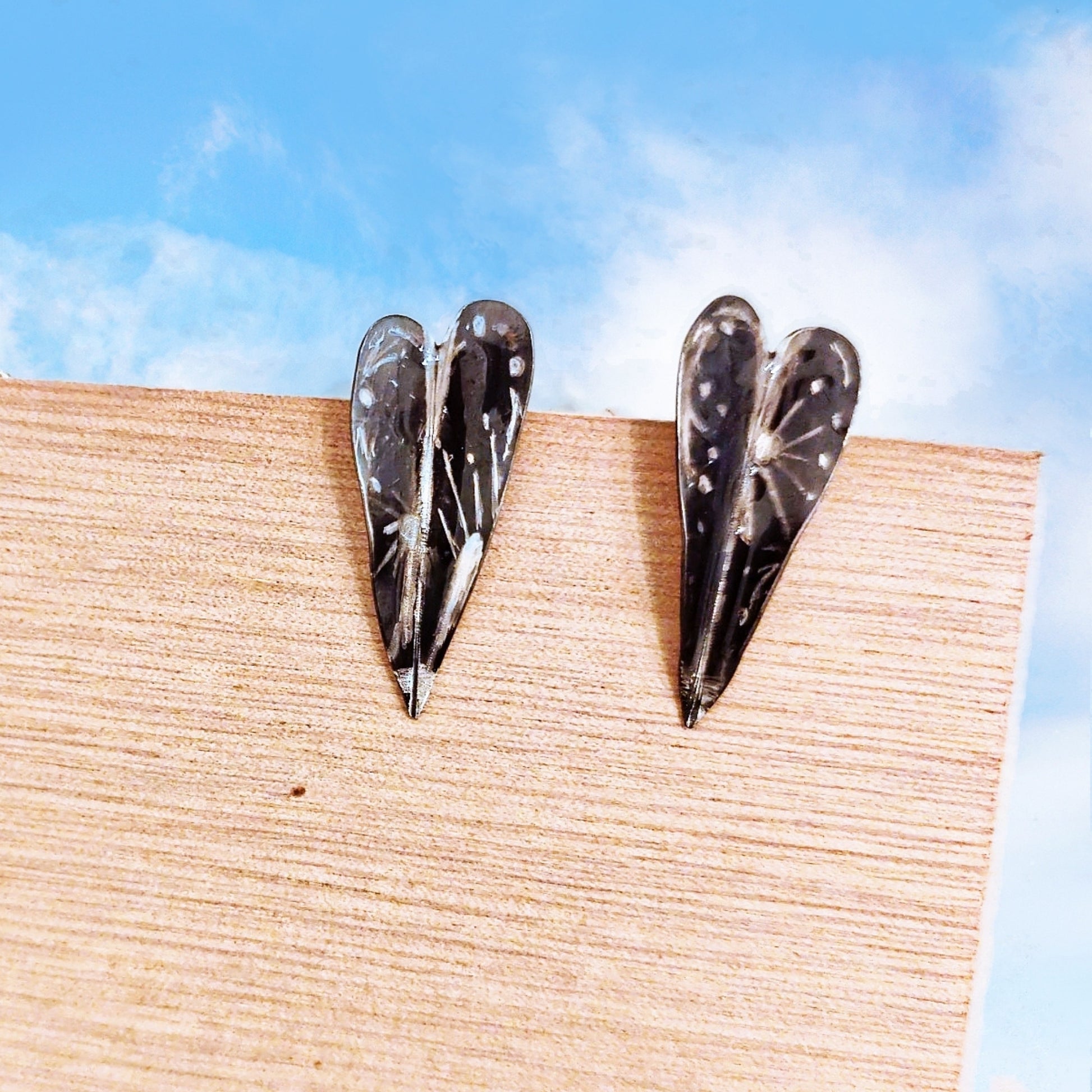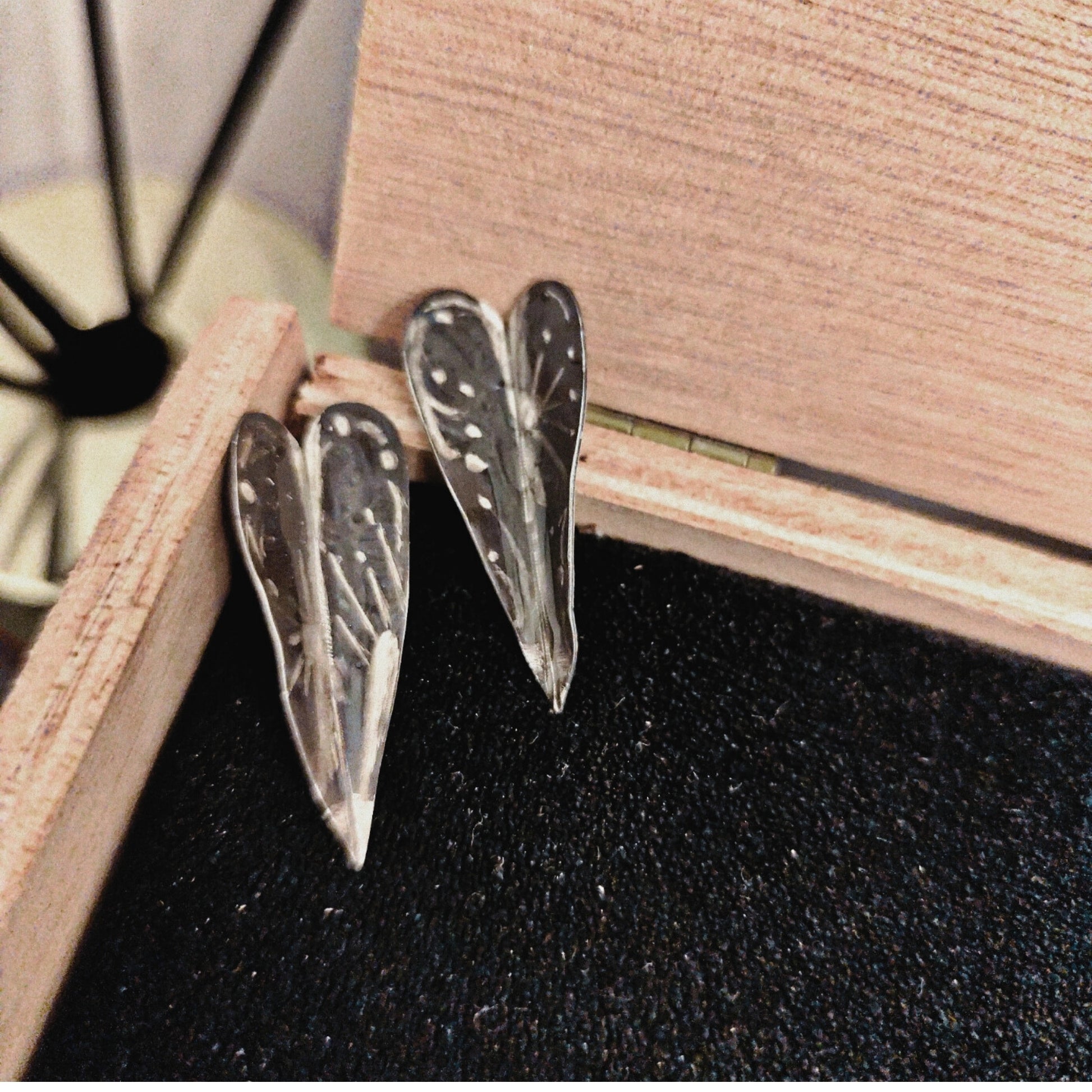 Μοναδικά ασημένια σκουλαρίκια Καρδιές, από τη συλλογή "Τα Ζωγραφιστά". Το κάθε κομμάτι είναι χαραγμένο στο χέρι με ελεύθερα σχέδια, γι' αυτό και το καθένα είναι μοναδικό.