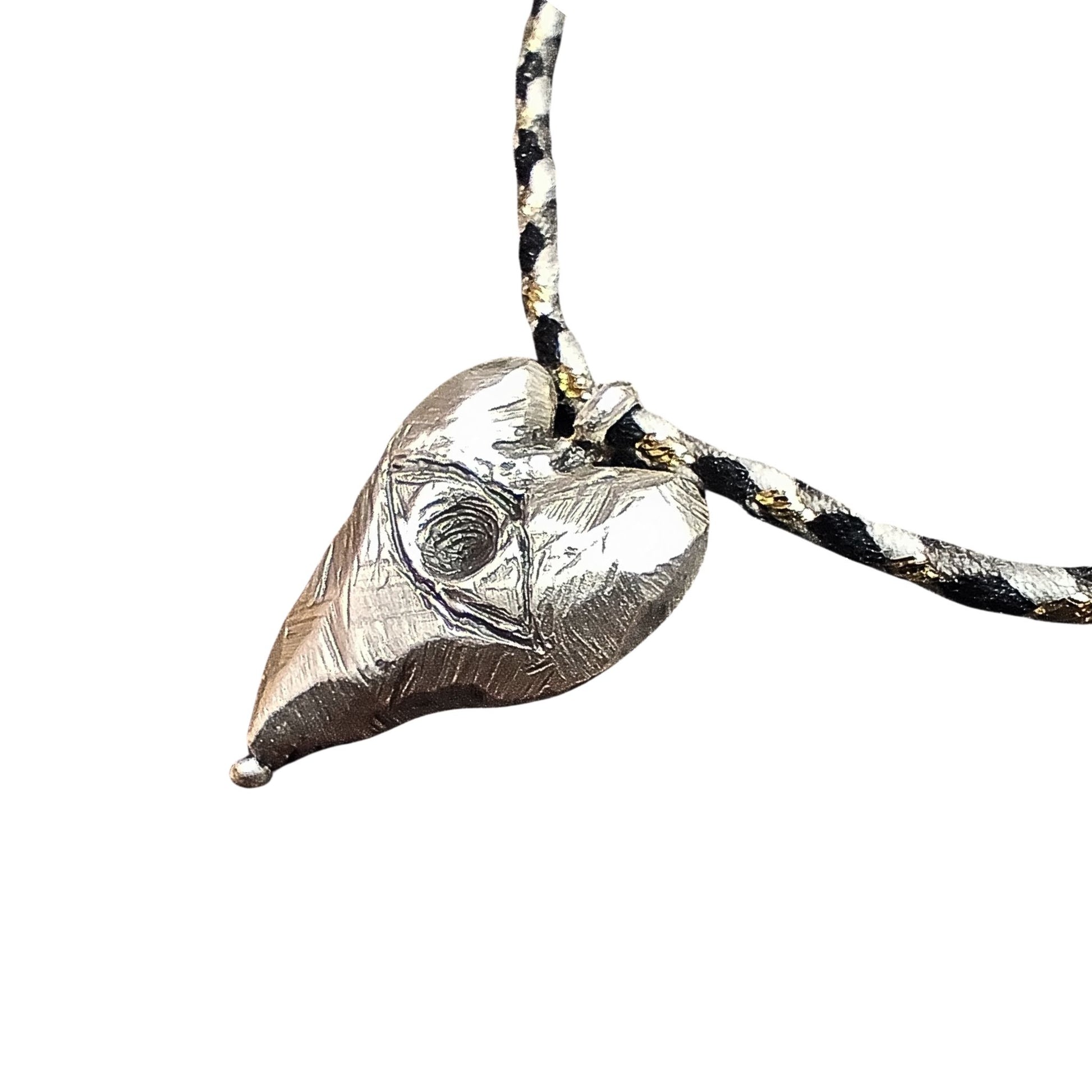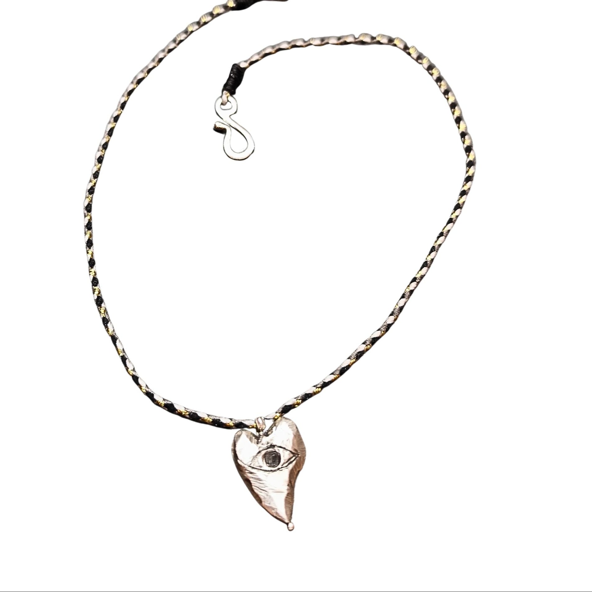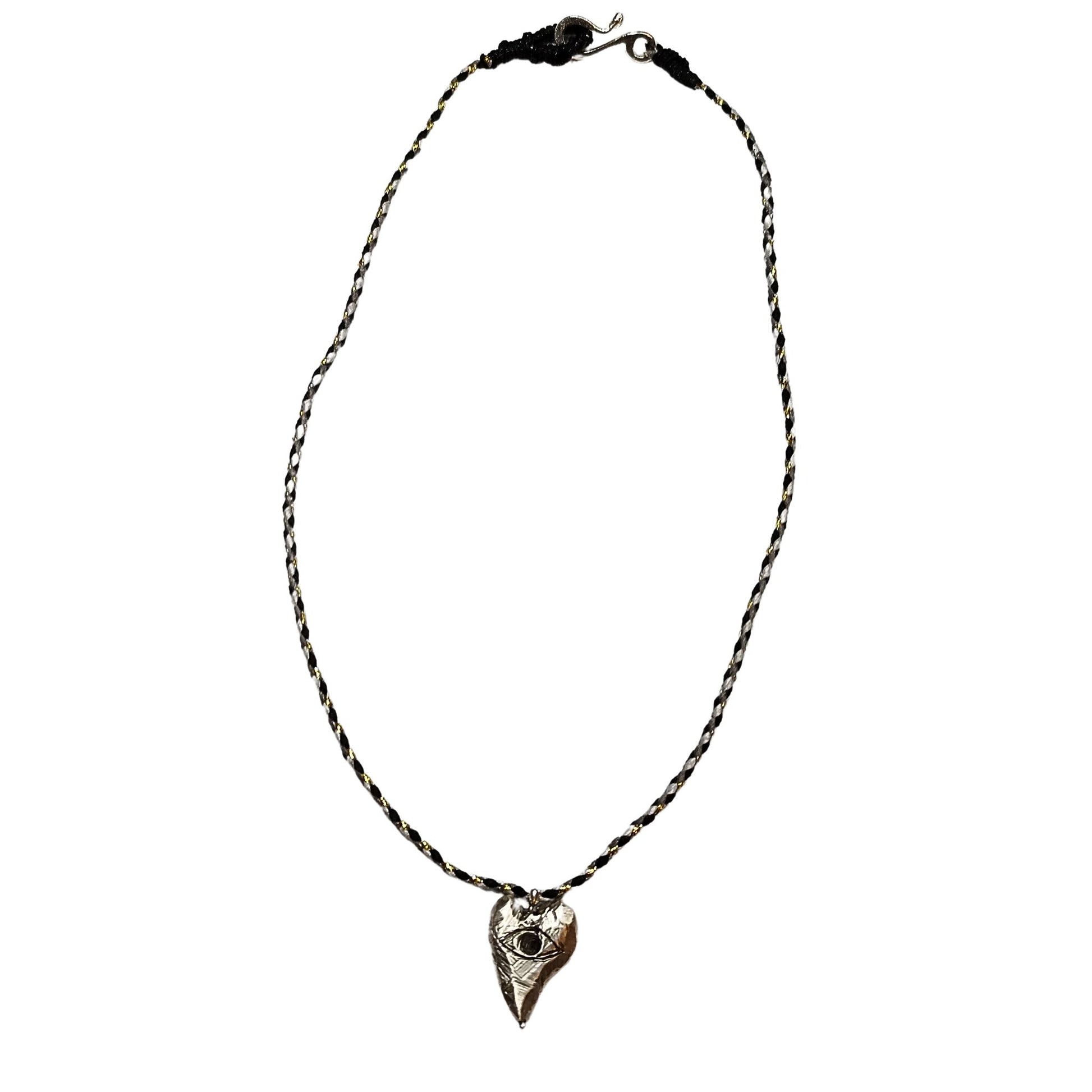 Χειροποίητο από ασήμι 925, το μενταγιόν σε σχήμα καρδιάς φέρει χαραγμένο το διαχρονικό σύμβολο του ματιού – φύλακας και οδηγός.