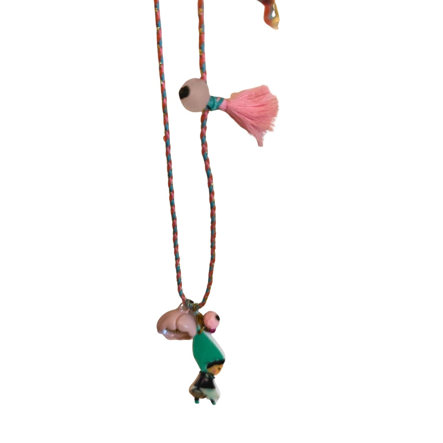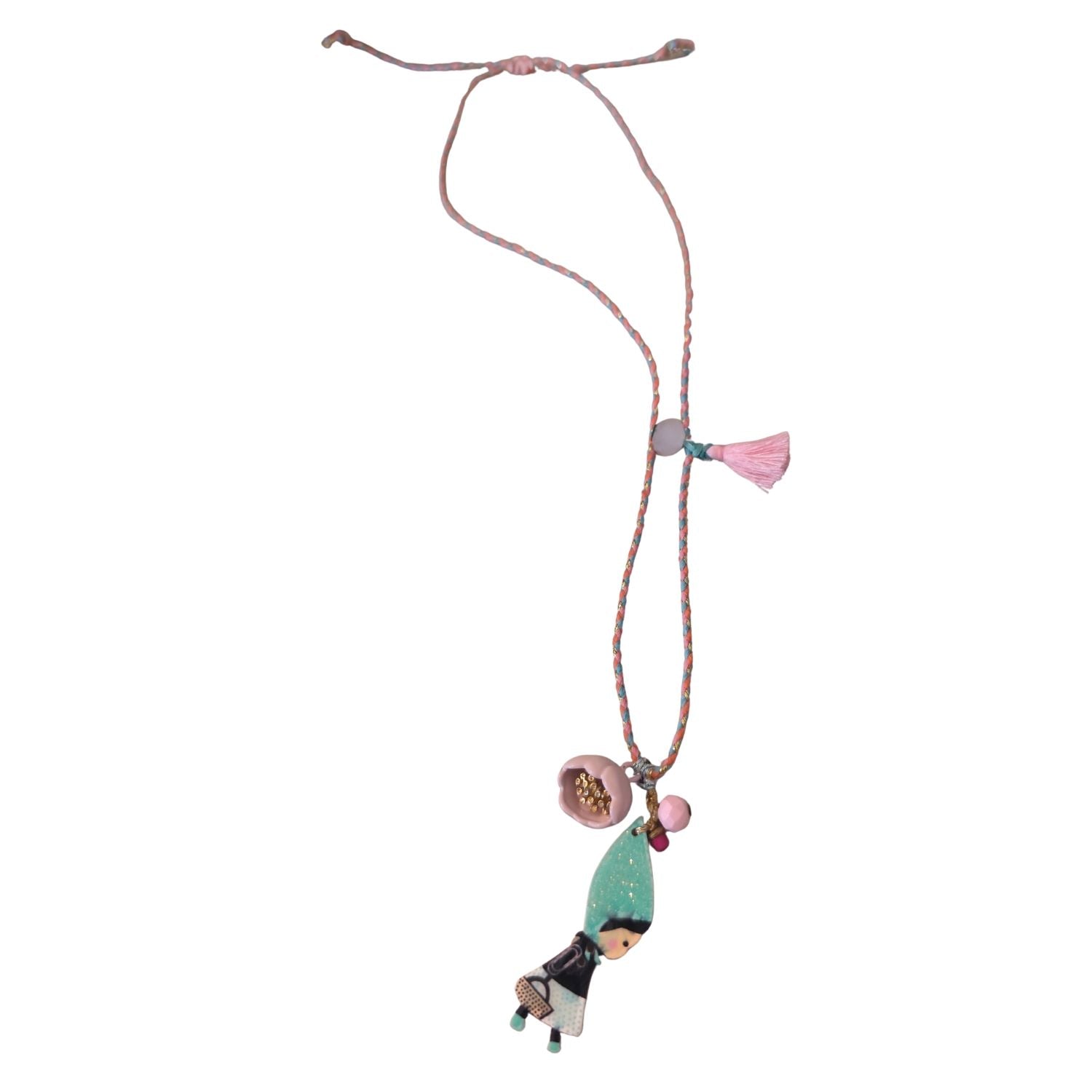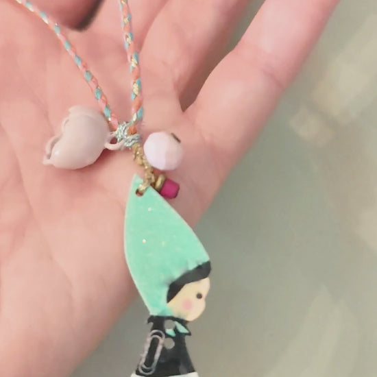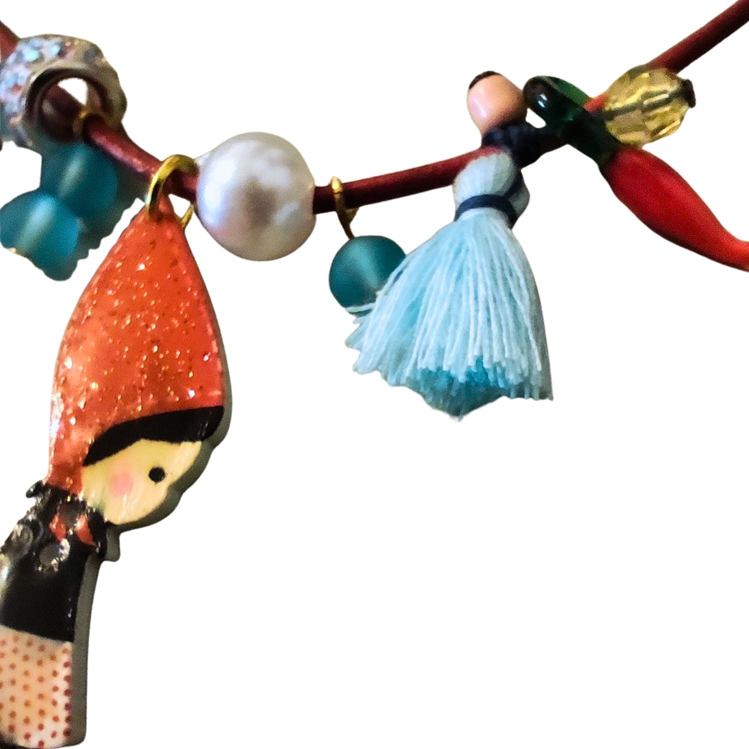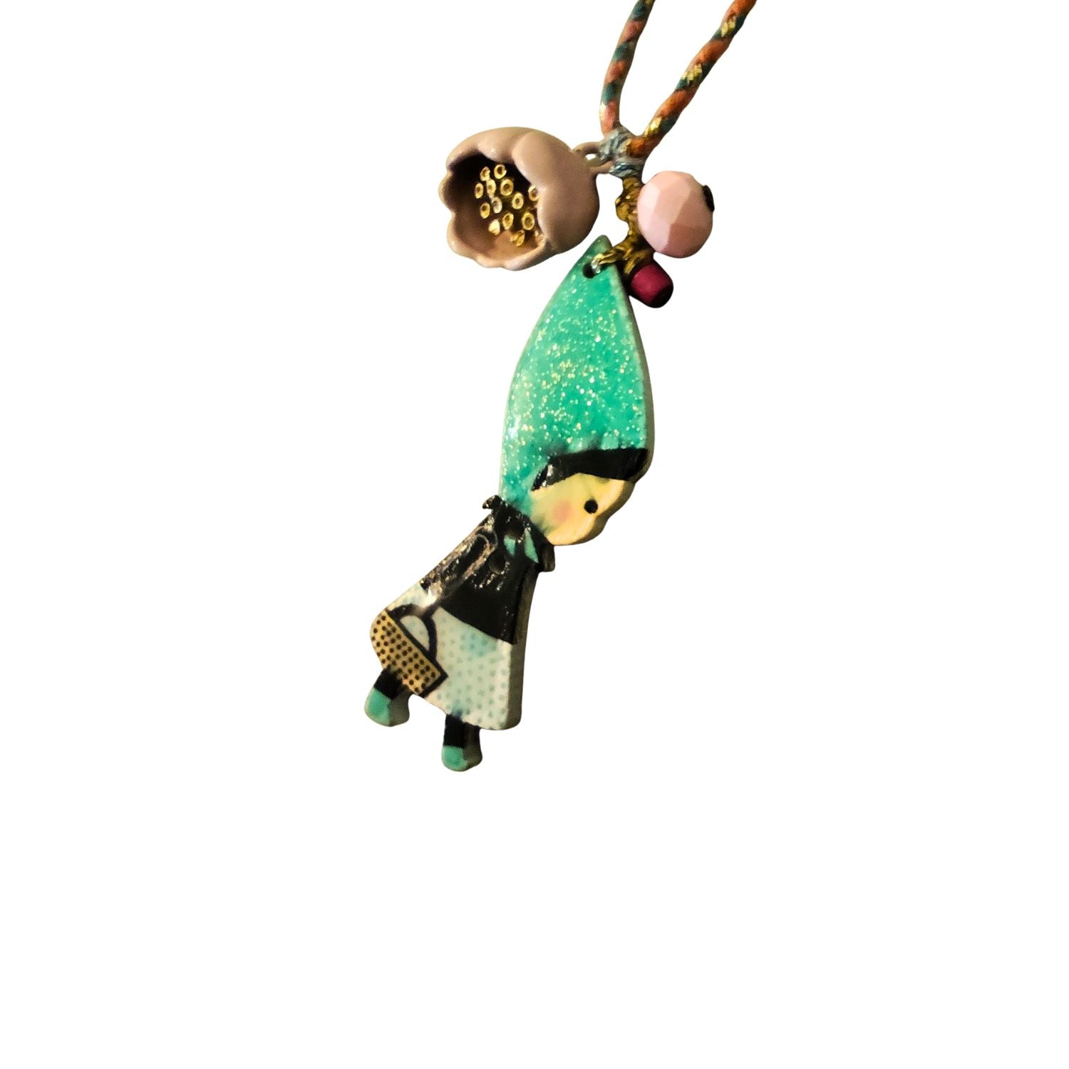 Αυτό το χαριτωμένο κολιέ διαθέτει μια ξύλινη, ζωγραφισμένη φιγούρα της Κοκκινοσκουφίτσας, περασμένη σε μαλακό κορδόνι, ιδανικό για καθημερινή χρήση. Ελαφρύ, πολύχρωμο και γεμάτο παραμυθένια γοητεία, είναι το τέλειο αξεσουάρ για κάθε μικρό ονειροπόλο. Το μήκος αυξομειώνεται εύκολα (κούμπωμα sliding knots). Επιλογή ανάμεσα σε διάφορα χρώματα.