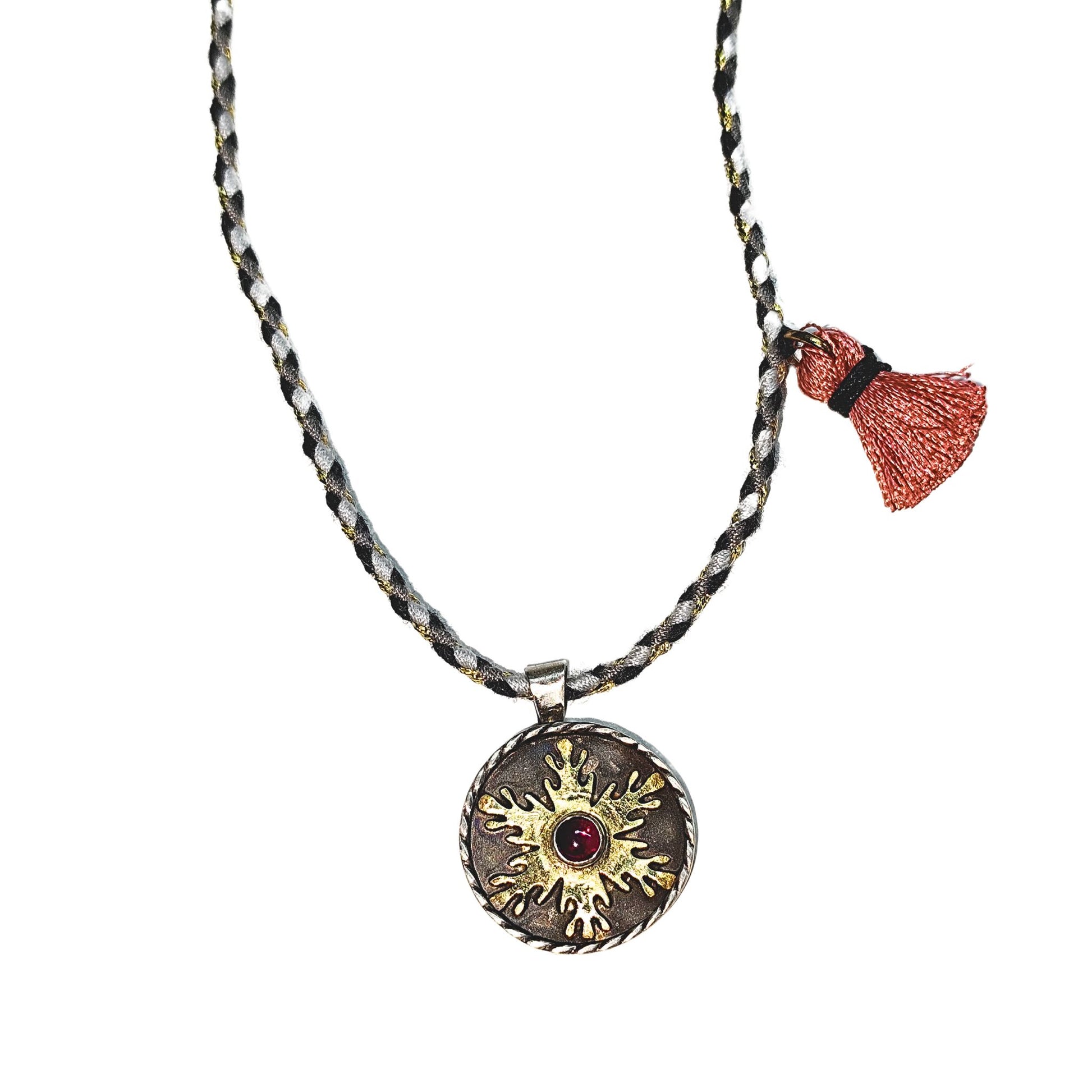 Ολοκληρώνεται με πλεγμένο βαμβακερό κορδόνι και φούντα, συνδυάζοντας τη boho αισθητική με παραδοσιακή τέχνη.