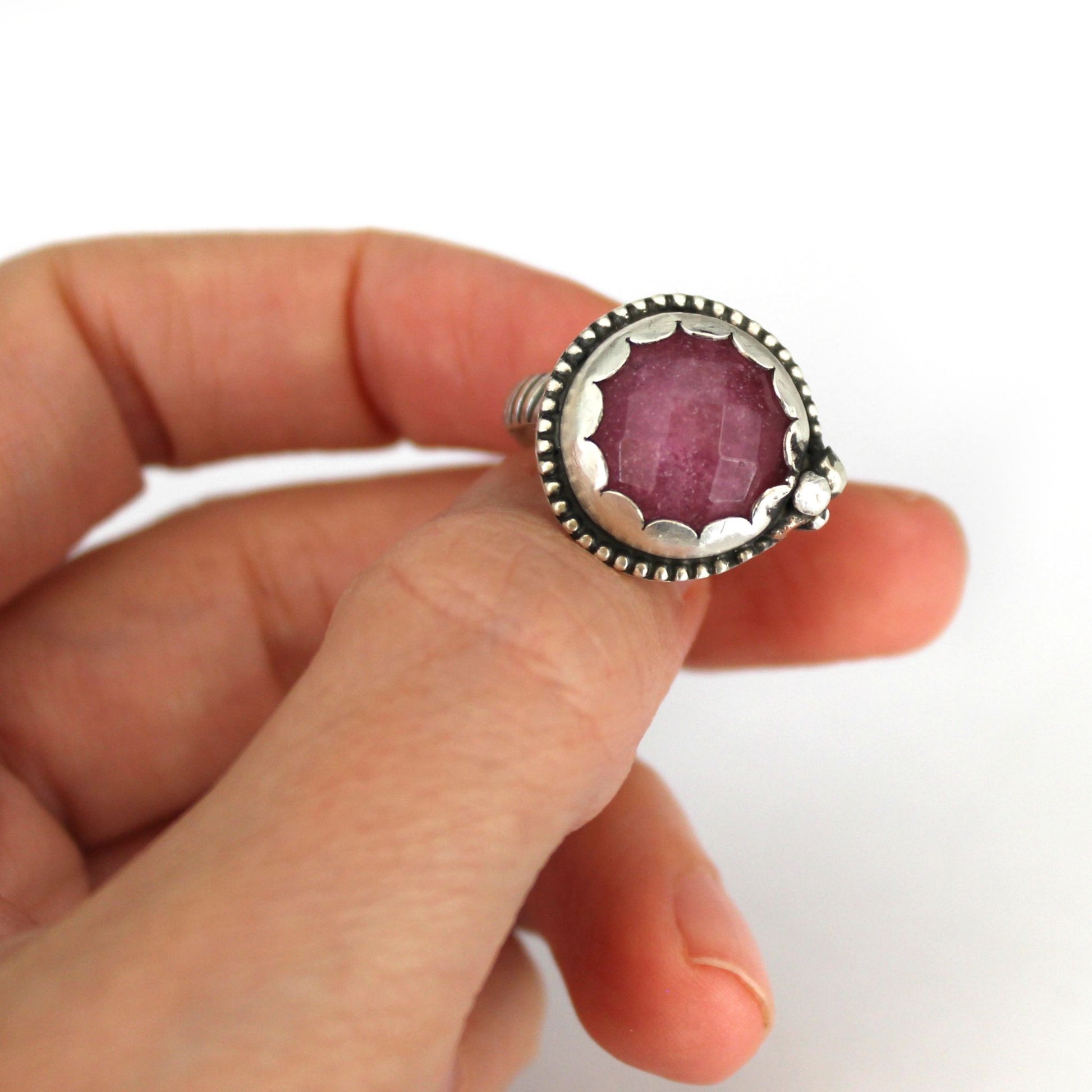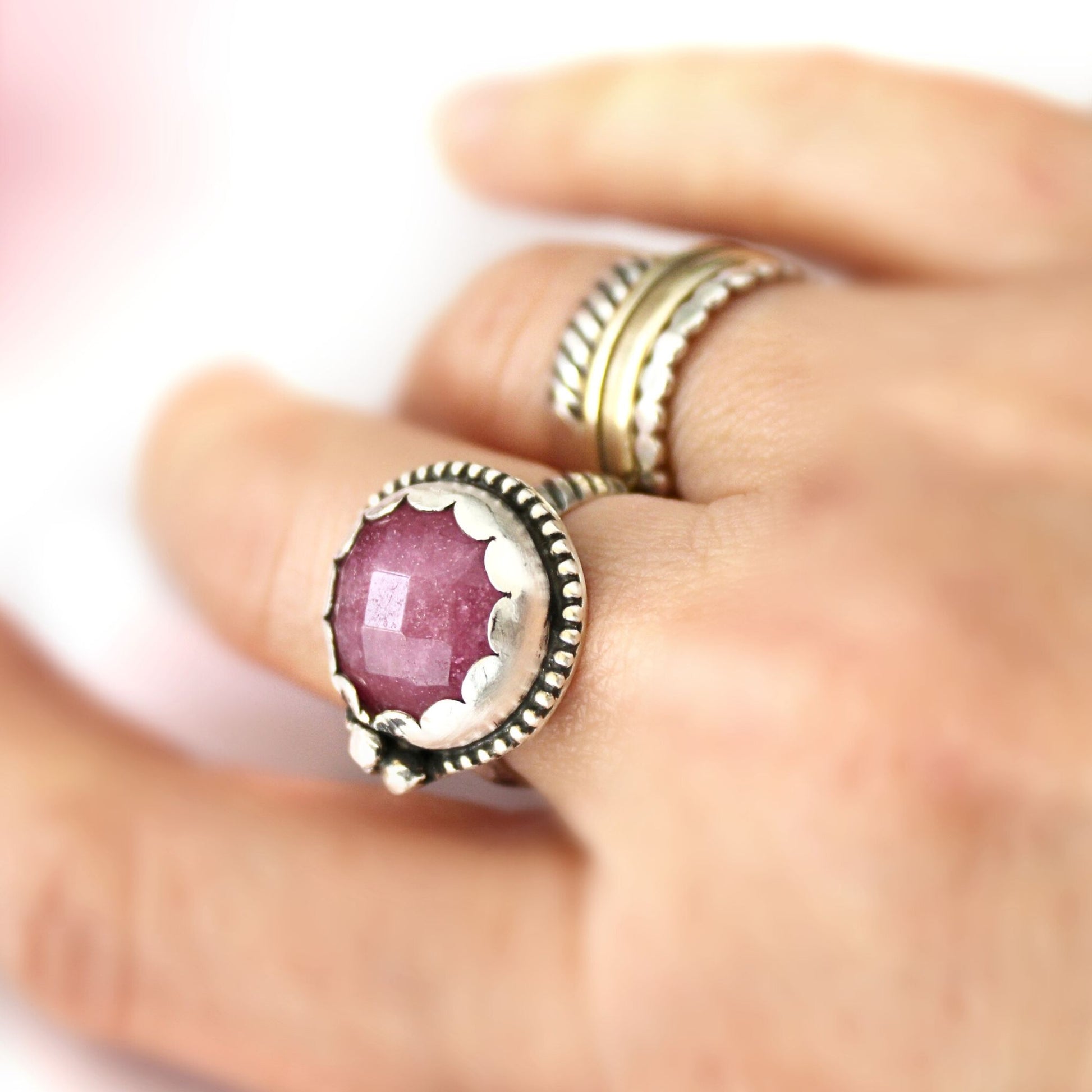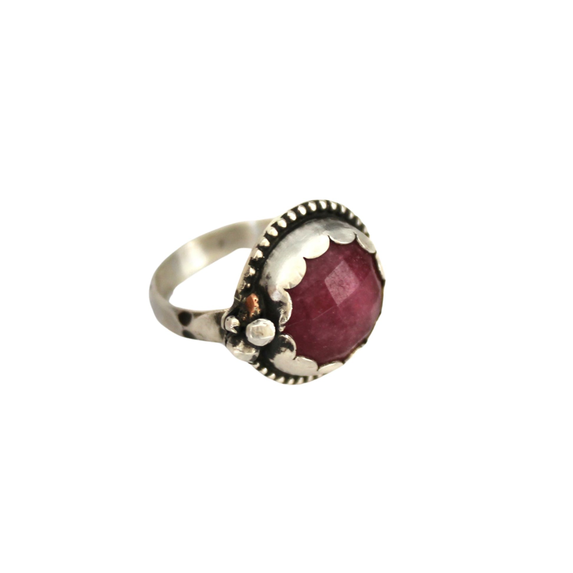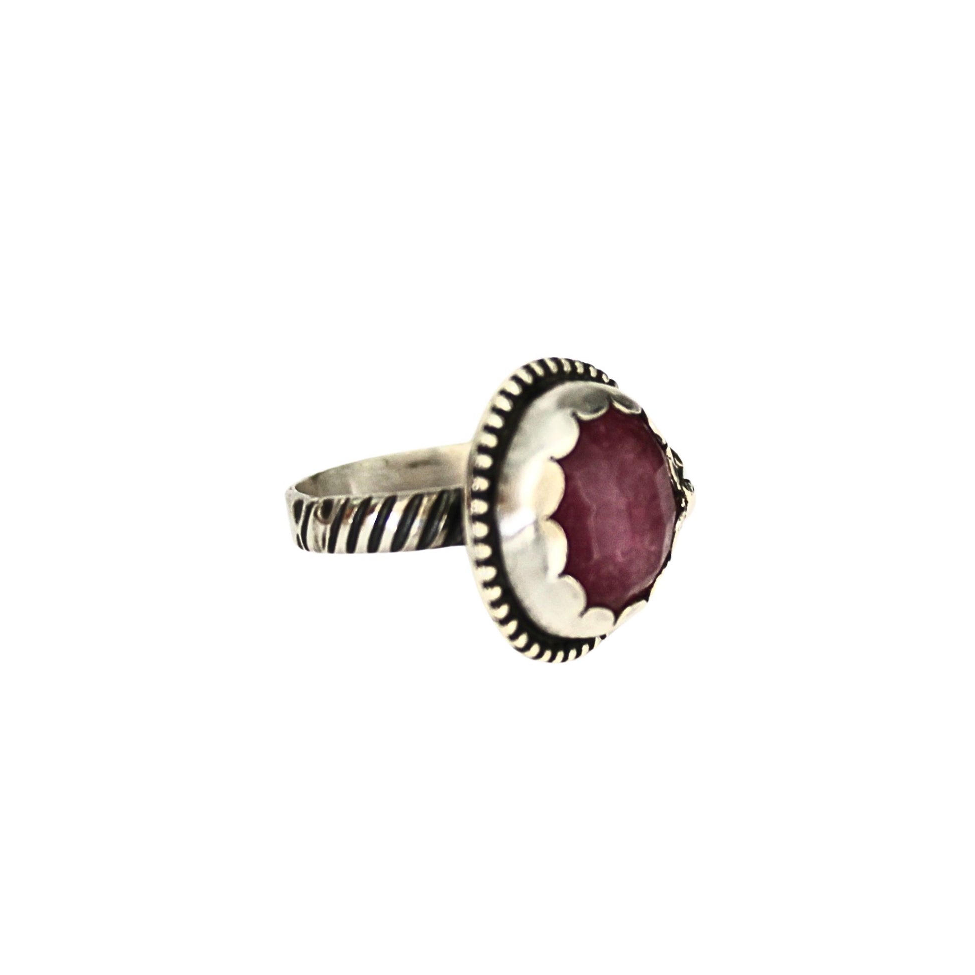 Απαλό και φωτεινό, αυτό το χειροποίητο δαχτυλίδι φιλοξενεί στο κέντρο του ένα υπέροχο ροζ Νεφρίτη (Jade) — μια πέτρα γνωστή για την ήρεμη ενέργεια και τη διακριτική της ζεστασιά. Τοποθετημένο σε μια ανάγλυφη ασημένια βάση με φυσικές γραμμές, αποπνέει ισορροπία και χάρη. Μια διακριτική αλλά δυναμική δήλωση κομψότητας.